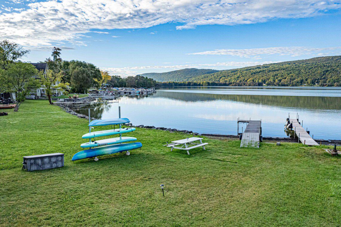 Experience luxury with stunning indoor/outdoor living spaces that seamlessly blend comfort and style. Majestically poised on 2 acres of lush greenery overlooking Otisco Lake, this captivating retreat offers amenities for all while still being close to countless things to do.