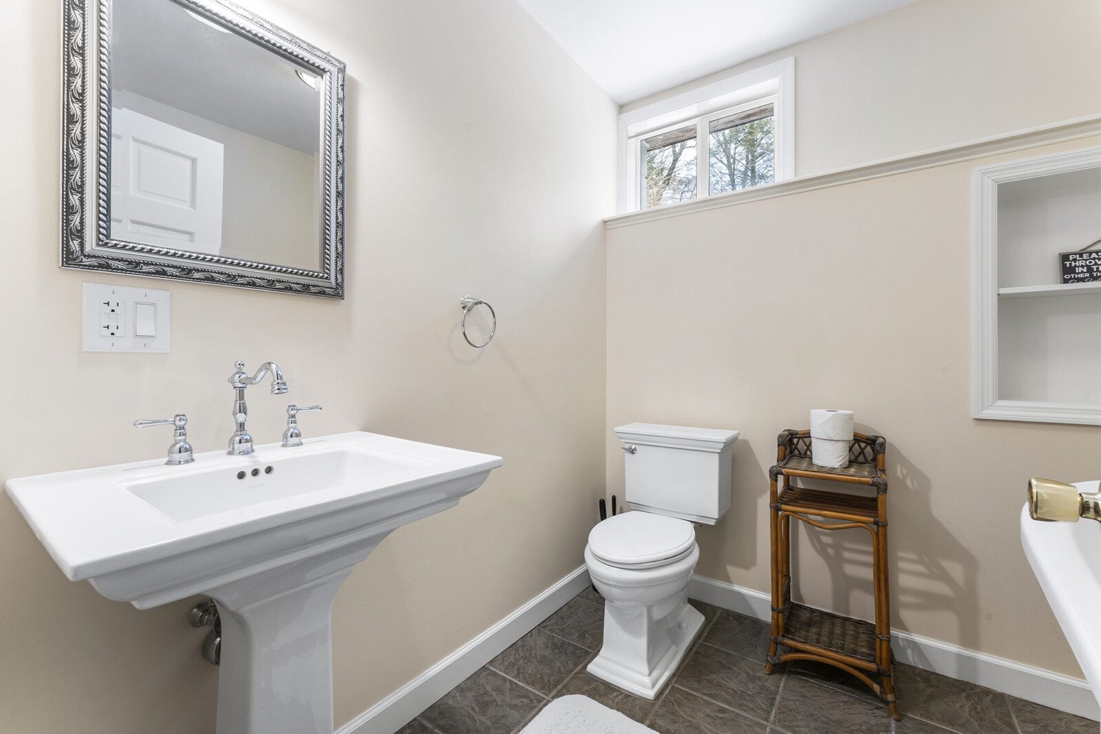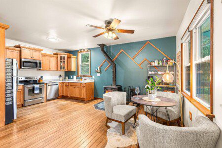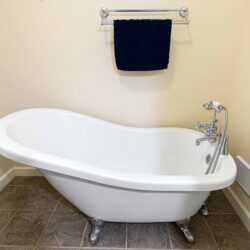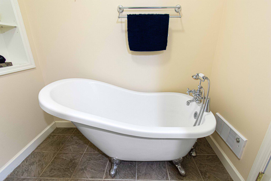 You’ll also find a full bathroom downstairs with a freestanding tub allows for a quiet space to soak.