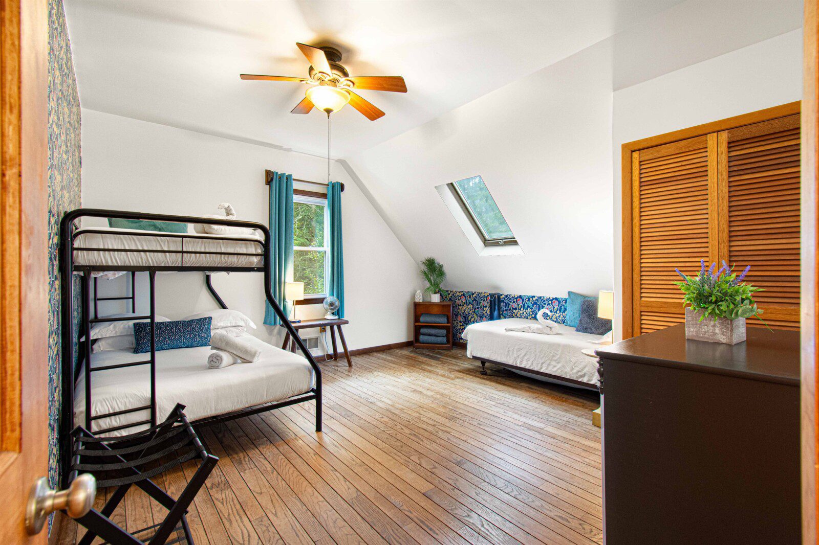 – Bedroom 3: twin-over-full bunk bed and an additional twin bed.
