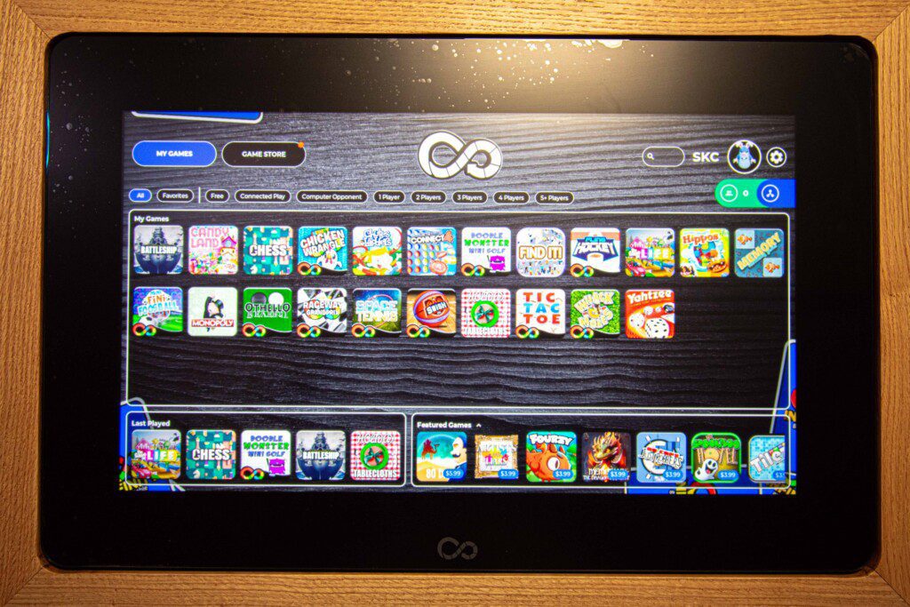 Decide who’s paying for dinner over a pinball tournament, choose from hundreds of games on the electronic Infinity Table, or pull out a board game or puzzle.